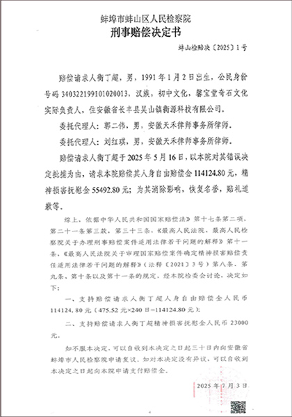 案件以存疑不起诉告终,李某获释。随后,在郭律师协助下,李某向蚌山区检察院提出国家赔偿申请并依法获赔付。